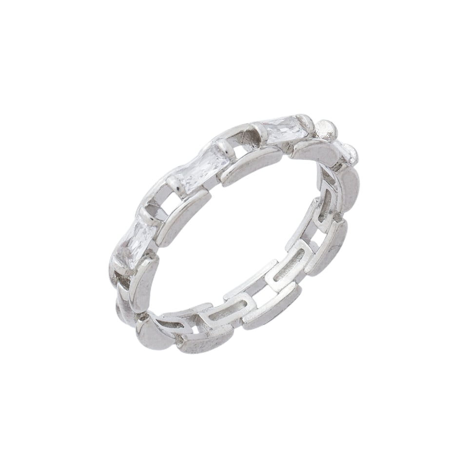 Anel 4 pedras 4x2mm baguete zircônia e elos quadrados BANHO DE RÓDIO