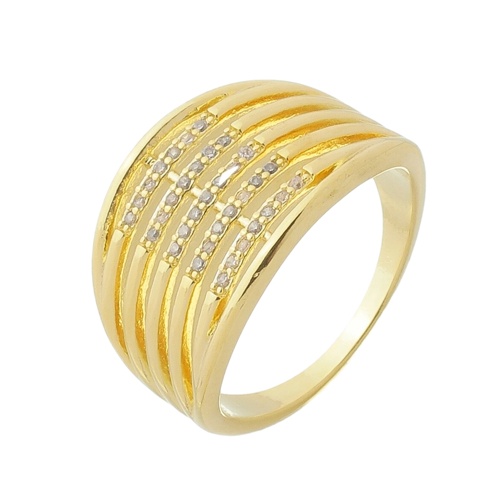 Anel 5 fios, lisos e pedras 1mm zircônia, parte superior medindo 1,3cm BANHO DE OURO