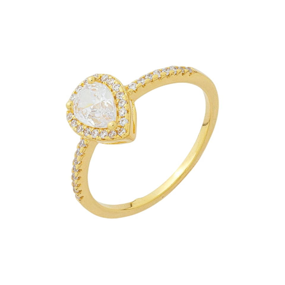 Anel gota 7x5mm zircônia e em volta pedras 1mm zircônia BANHO DE OURO