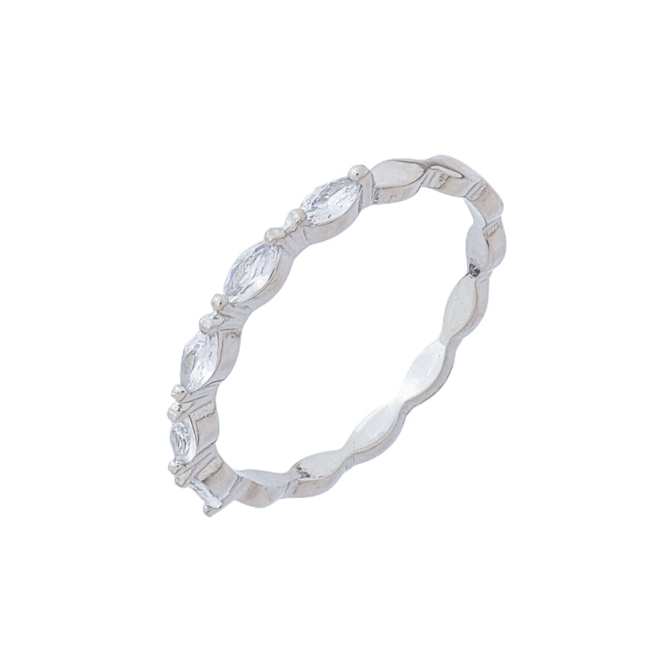 Anel meia aliança 5 pedras 4,5x2mm navete zircônia BANHO DE RÓDIO