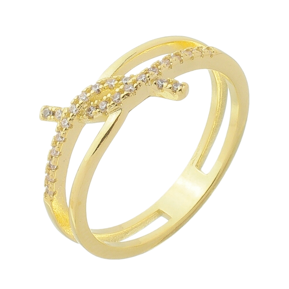 Anel X 2 aros, pedra 1,0mm zircônia, parte superior medindo 0,7cm BANHO DE OURO