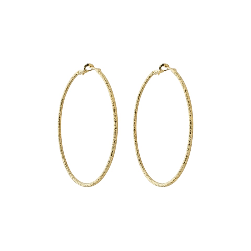 Brinco argola fio redondo 2,00mm diamantado, medindo 6,7cm de diâmetro BANHO DE OURO