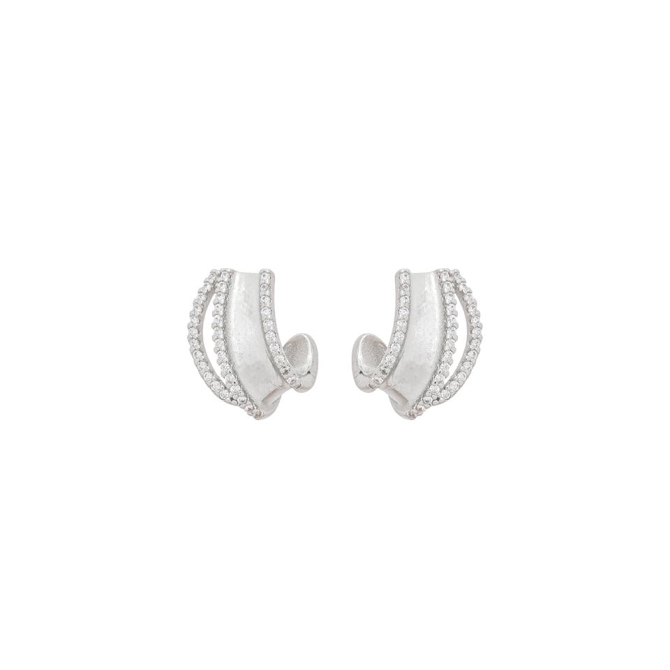 Brinco argola formato orgânico com pedra 1mm zircônia, medindo 1,5cm de comprimento BANHO DE RÓDIO
