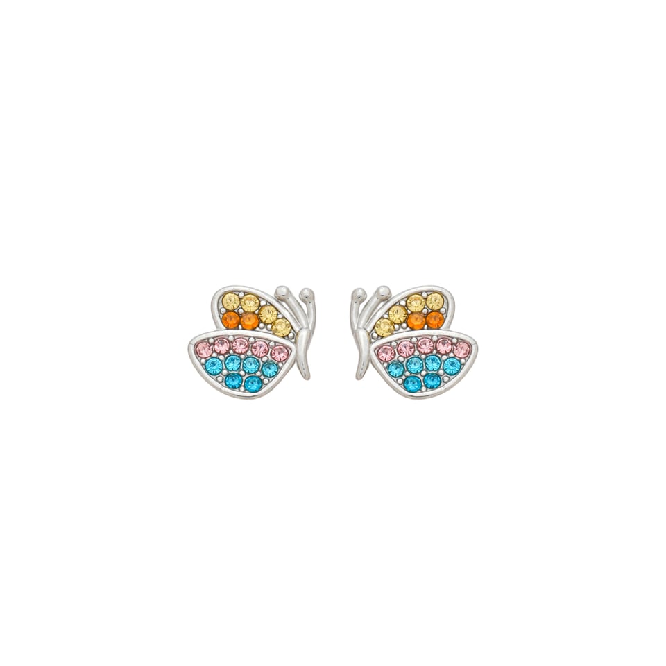 Brinco borboleta com pedras 1mm zircônia colorida, medindo 1x1cm AÇO INOX