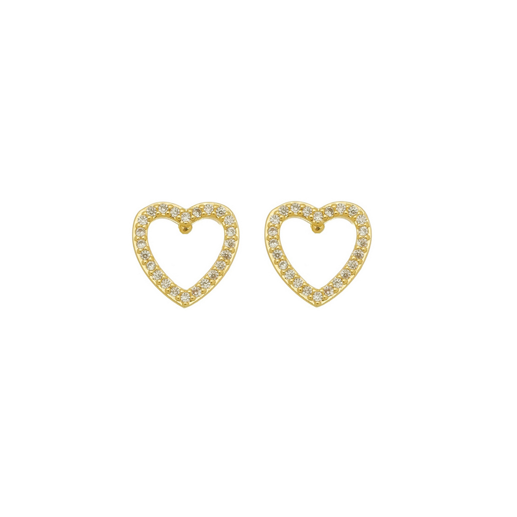 Brinco coração vazado com pedras 1,25mm zircônia, medindo 0,9x1,0cm BANHO DE OURO