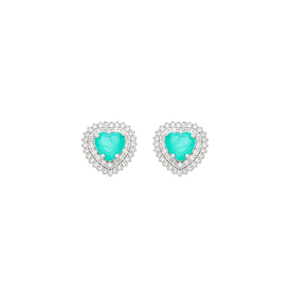 Brinco pedra 8x8mm coração e em volta pedras 1mm zircônia, medindo 10x10cm BANHO DE RÓDIO