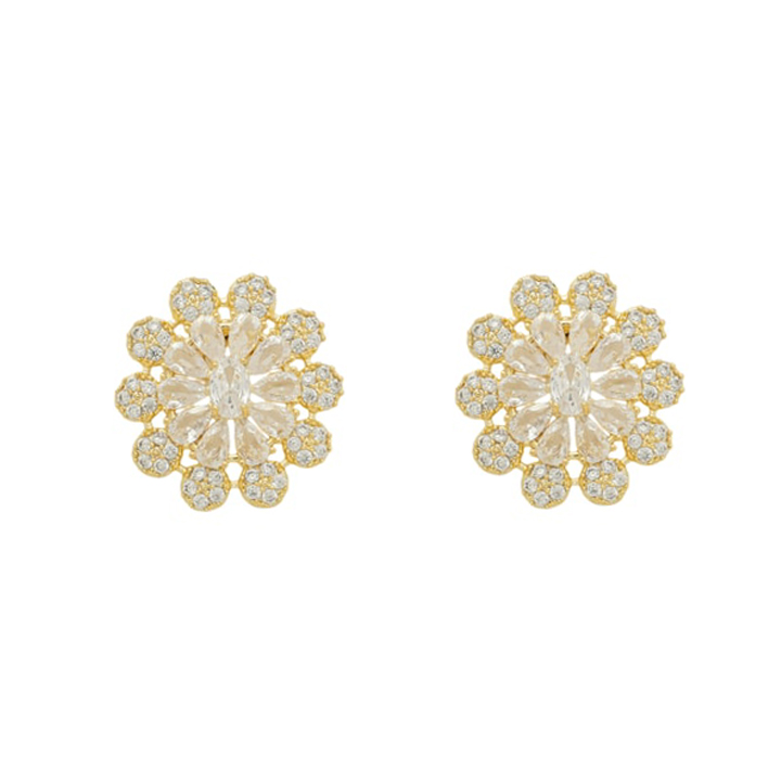 Brinco flor cravejada de pedras 1,0mm zircônia, medindo 2,5x2,1cm BANHO DE OURO