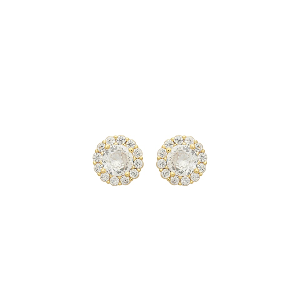 Brinco fixo redondo pedra 5mm, pedra 1,25mm zircônia, medindo 0,8cm de diâmetro BANHO DE OURO