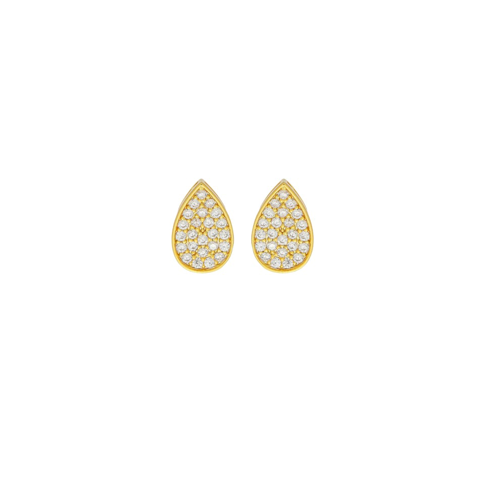 Brinco gota cravejada com pedras 1mm zircônia, medindo 0,8x0,5cm BANHO DE OURO