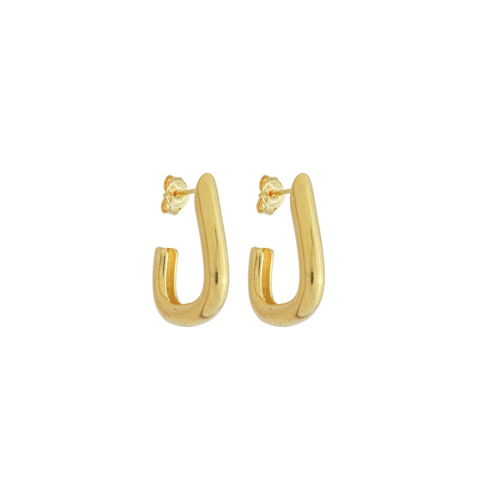 Brinco meia argola em formato J liso, medindo 2,2x2cm BANHO DE OURO