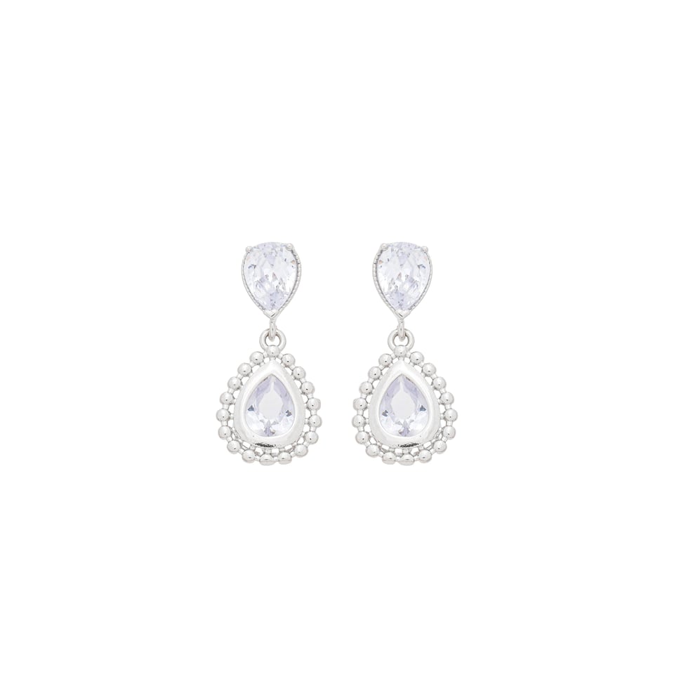 Brinco gota pedra zircônia medindo 2,5cm de comprimento BANHO DE RÓDIO