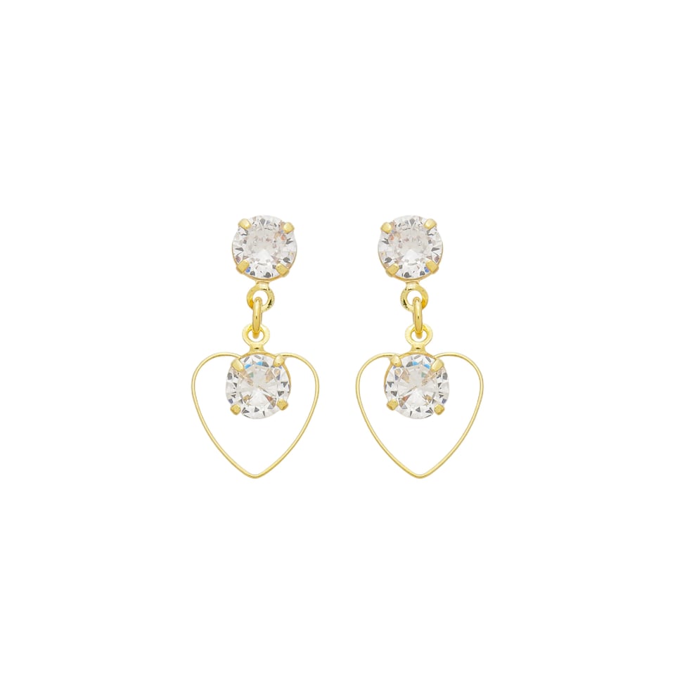 Brinco base 5mm zircônia e pingente coração liso e pedra 5mm zircônia, medindo 2,1cm BANHO DE OURO