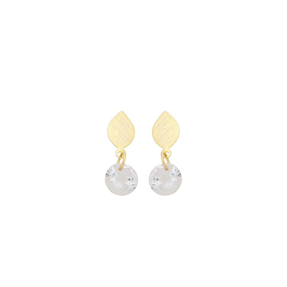 Brinco base fosca e pingente ponto de luz pedra 8mm zircônia, medindo 2,5cm de comprimento BANHO DE OURO