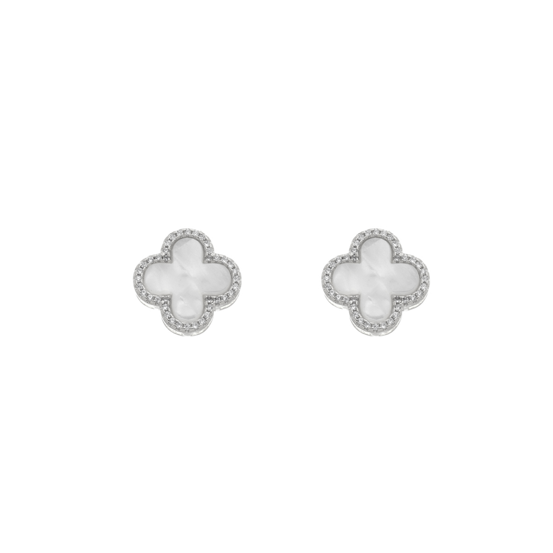 Brinco fixo trevo resinado branco, medindo 1,3x1,3cm AÇO INOX