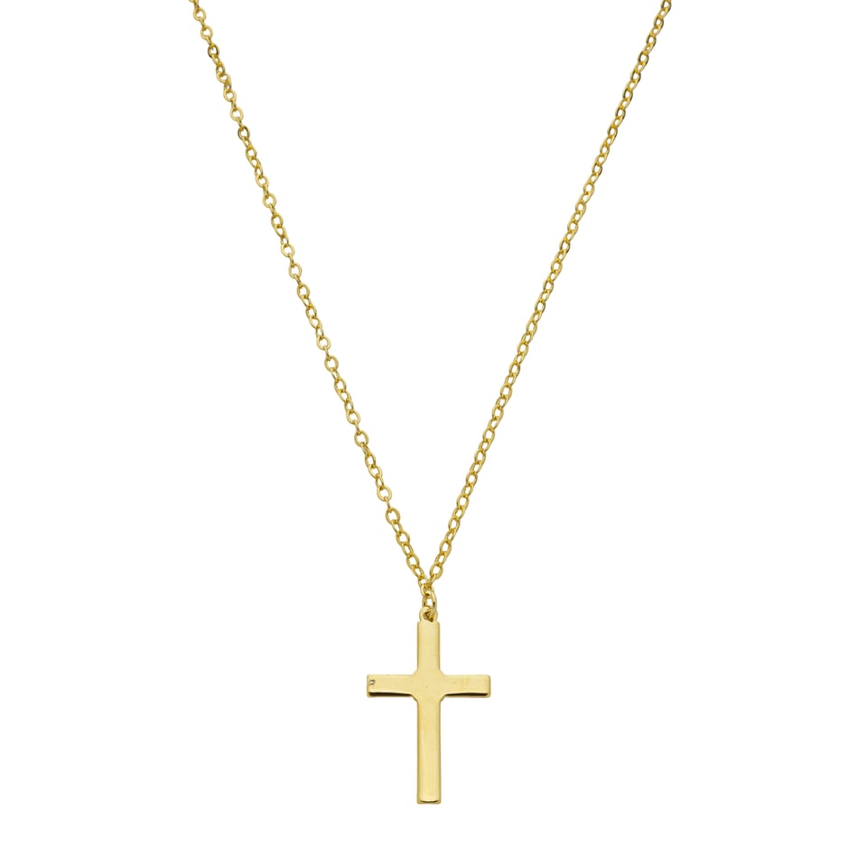 Corrente malha cadeado 2,0mm com pingente cruz chapa lisa, comprimento 45cm BANHO DE OURO