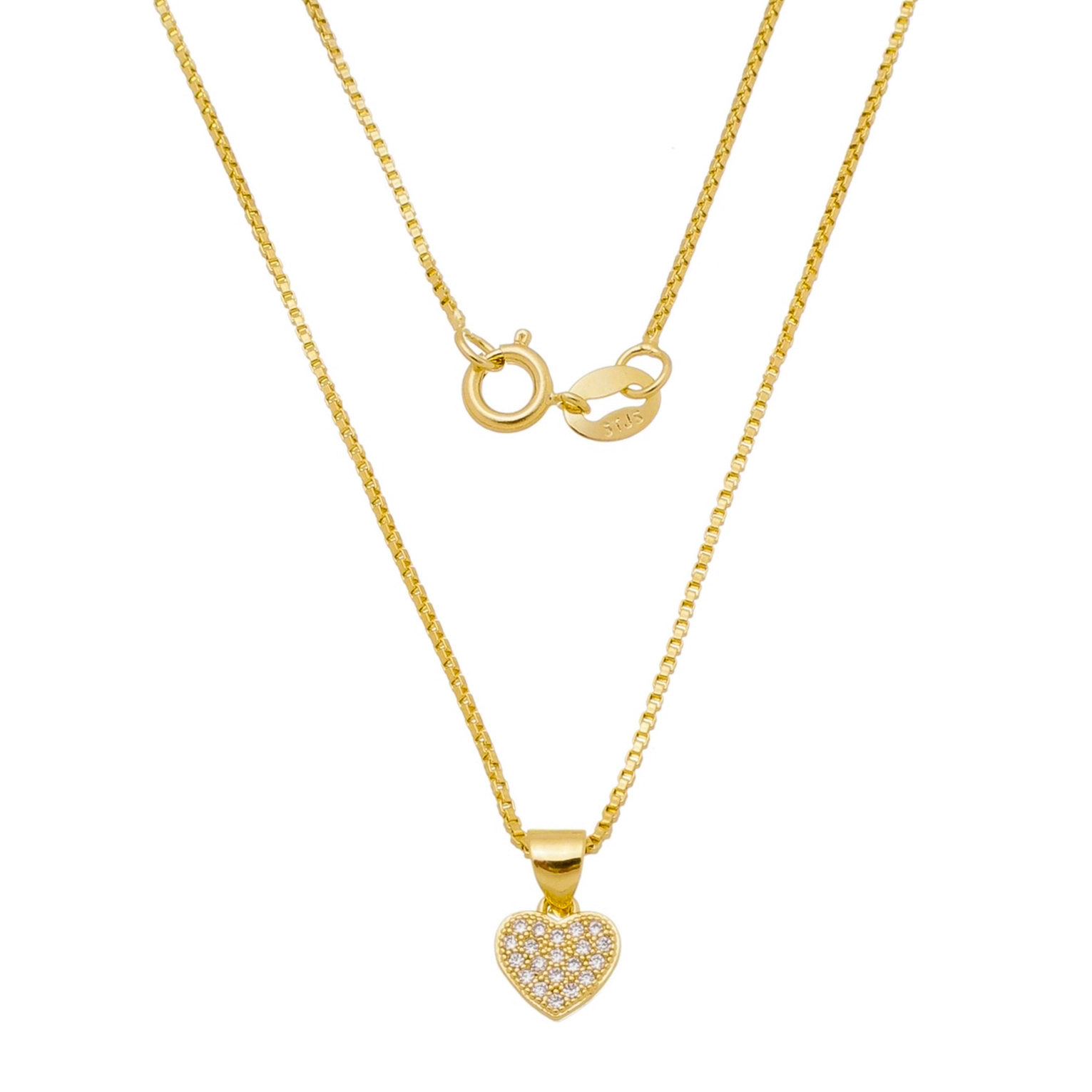 Corrente malha veneziana 0,90mm com pingente coração com pedras 1mm zircônia, comprimento 40cm BANHO DE OURO