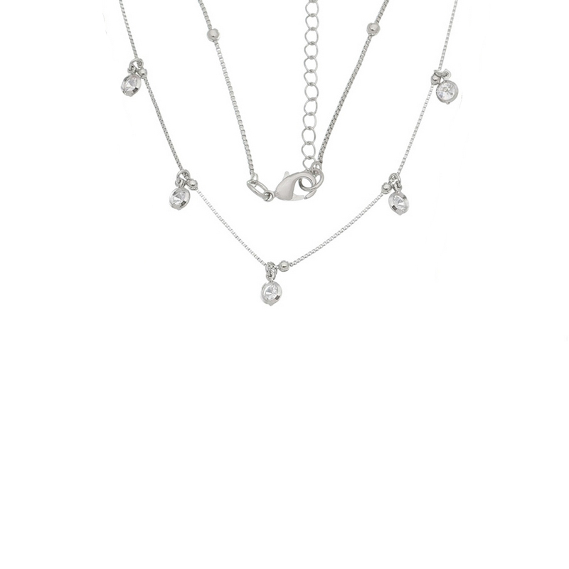 Corrente malha veneziana 0,90mm com bolas 2,5mm e pingentes pedras 5mm zircônia, comprimento 40cm + 10cm de extensor BANHO DE RÓDIO