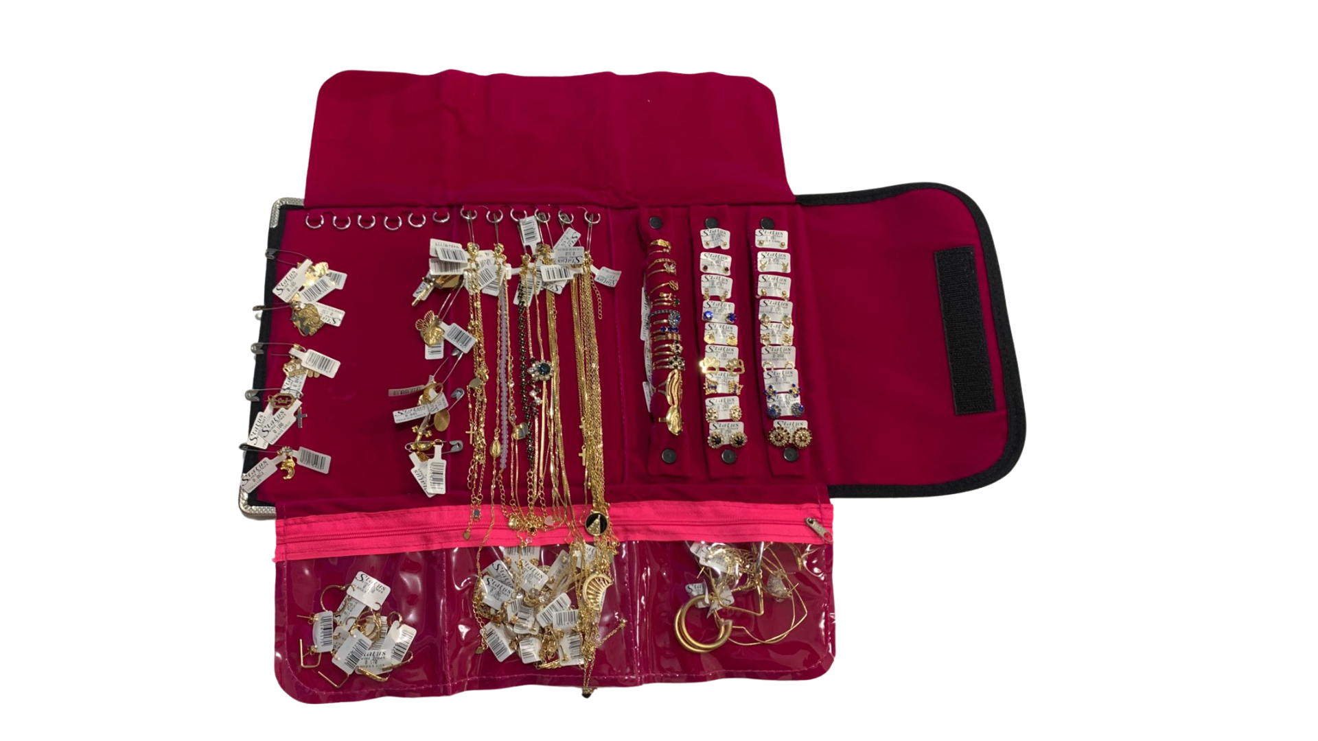 Mostruário pink médio montado com 99 peças em Banho de Ouro, sendo: