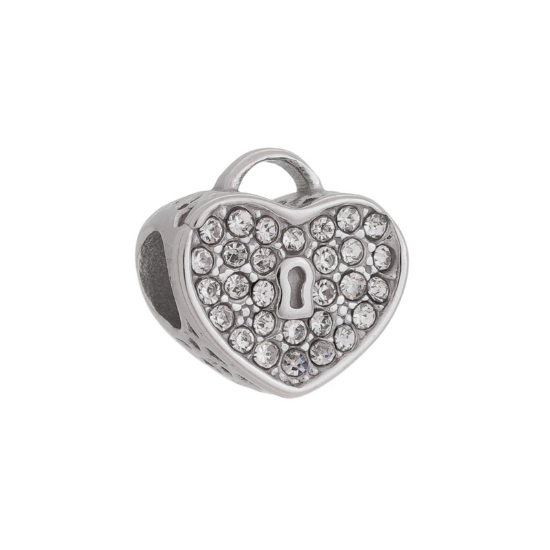 Pingente berloque para pulseira pandora cadeado coração com pedras 1,5mm, medindo 1,1x1,1cm AÇO INOX