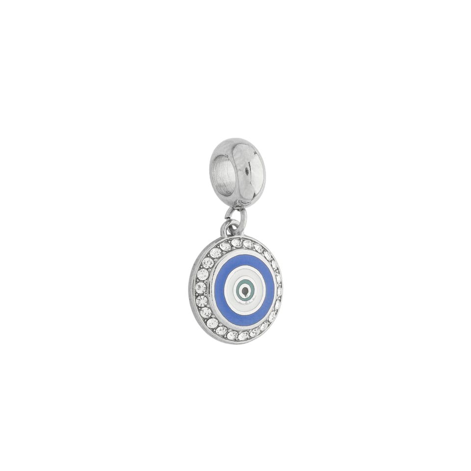Pingente berloque para pulseira pandora olho grego com zircônia, medindo 2,2x1,2cm AÇO INOX