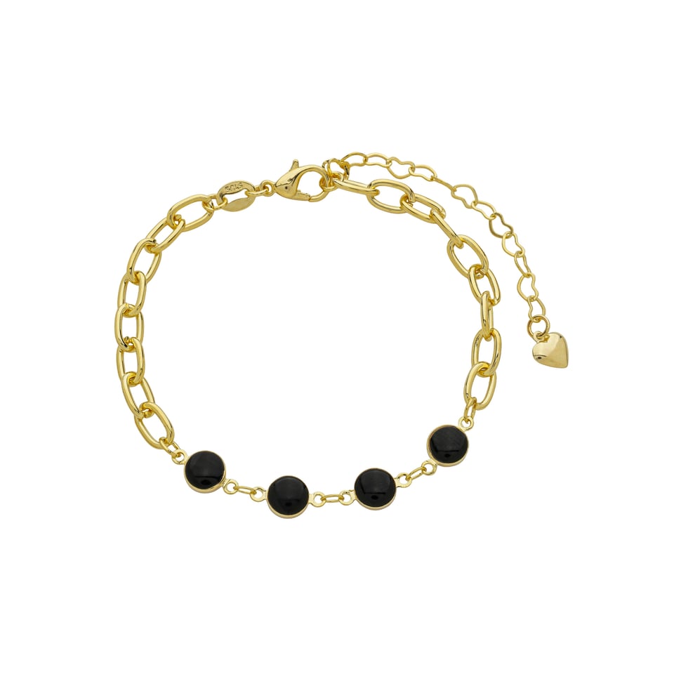 Pulseira malha cartier 5,4mm com pedra resinada preta, medindo 18cm + 5,5cm de extensor BANHO DE OURO