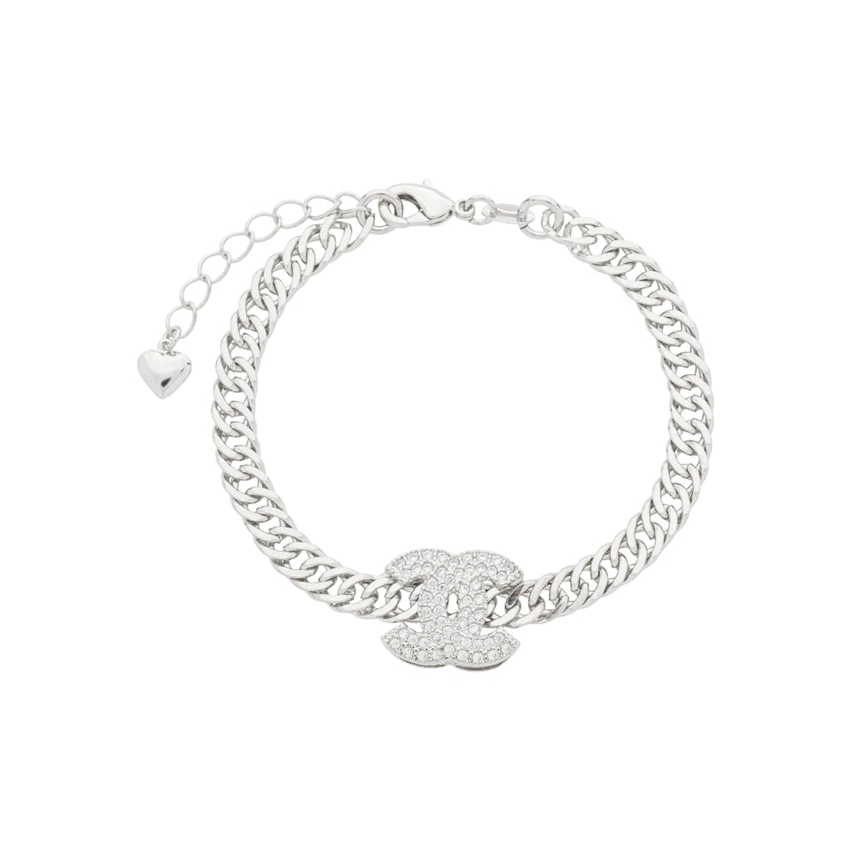 Pulseira réplica chanel malha dupla 5,6mm, pedras 1,0mm zircônia, comprimento 17cm + 3cm de extensor BANHO DE RÓDIO