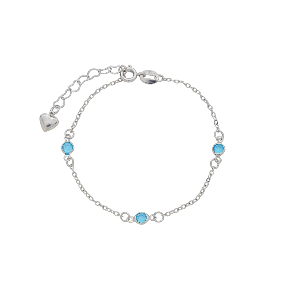 Pulseira tiffany malha portuguesa 1,6mm com pedras 6mm azul, comprimento 14cm + 5cm de extensor BANHO DE RÓDIO