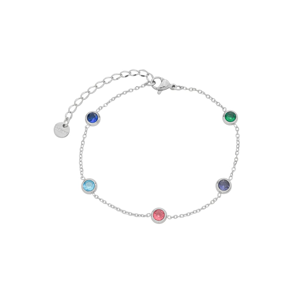 Pulseira tiffany malha cadeado 1,6mm com pedras 6mm zircônia colorida, comprimento 17cm + 4cm de extensor AÇO INOX